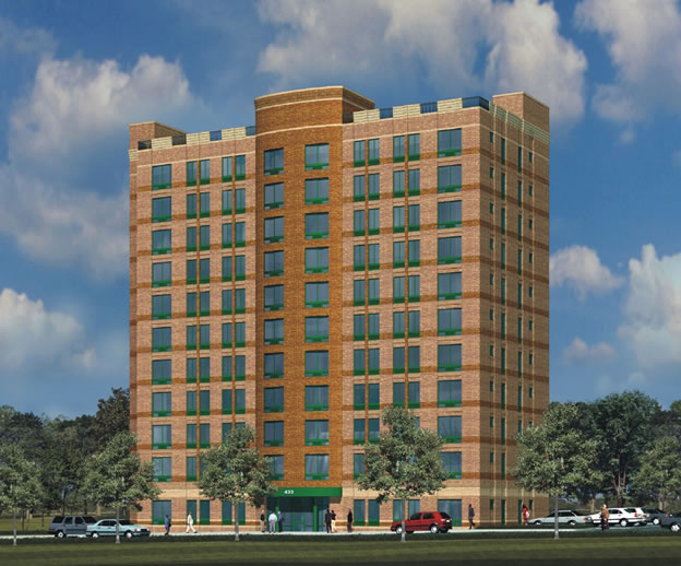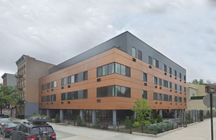 Construction of New Supportive Affordable apartment housing, comprising of approximately 64.265 GSF, 72 units, Six stories tall plus full finished basement. The project will provide for on-premises supportive services and large contingent of common areas recreational space for the residents. The building is designed to meet NYSERDA and Green Communities environmental criteria. The building structure comprises of Pre-cast Hollow Core Concrete planks Floors, Masonry bearing walls, combination brick and rains screen facades, two access elevators and enhanced a high level interior finishes etc. Intensive Green Roof, terraces and extensive outdoor spaces. |